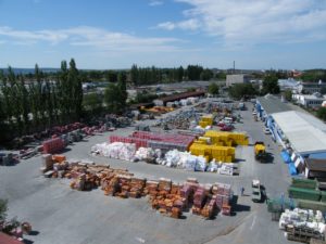 Na kryté i volné ploše o rozloze téměř 20 000 m2 skladuje společnost veškeré své materiály, a proto jsou vždy hned připraveny ke stavbě. V areálu jsou zpevněné komunikace, které umožňují snadný vjezd kamionů a nákladních vozů, díky kterým vám společnost může zajistit rychlou dopravu všech stavebních materiálů až na místo určení. Samozřejmostí je nakládka a vykládka materiálu pomocí auta s hydraulickou rukou. V areálu najdete také prodejnu a půjčovnu nářadí. Řemeslníci všeho druhu ale i kutilové si určitě vyberou z bohaté nabídky ručního nářadí, vysoké nároky dalších zákazníků jistě splní široký sortiment elektrického nářadí od všech významných výrobců a samozřejmě nesmí chybět ani nabídka stavebních strojů. Samozřejmostí je pro společnost také řešení oprav a revizí nářadí ve spolupráci s autorizovanými servisy výrobců. Pokud budete mít problém se v sortimentu vyznat, odborníci firmy vám rádi přispěchají na pomoc.